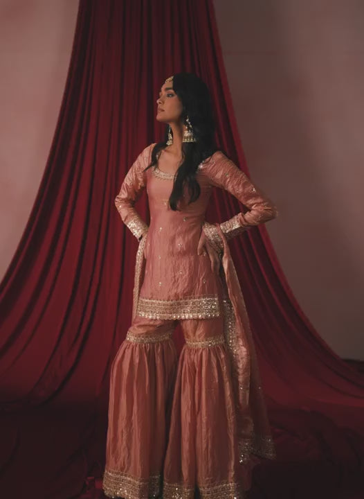 7. Dark Rust Embroidered Tissue Gharara