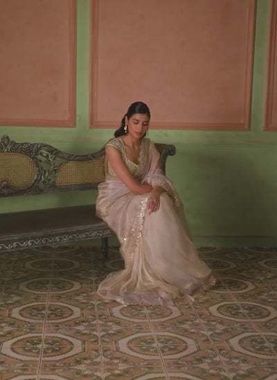 Nude Gold Embroidered Silk Saree