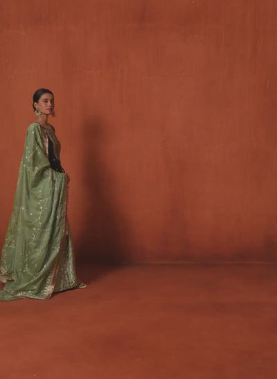 Black and Green Embroidered Silk Sharara Suit