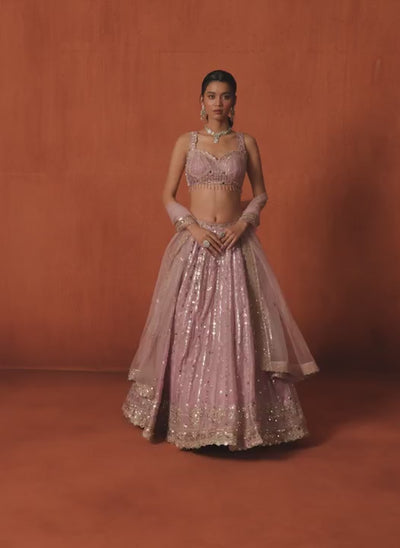 Lilac Embroidered Satin Lehenga