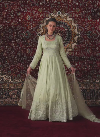 Soft Mint Embroidered Silk Anarkali