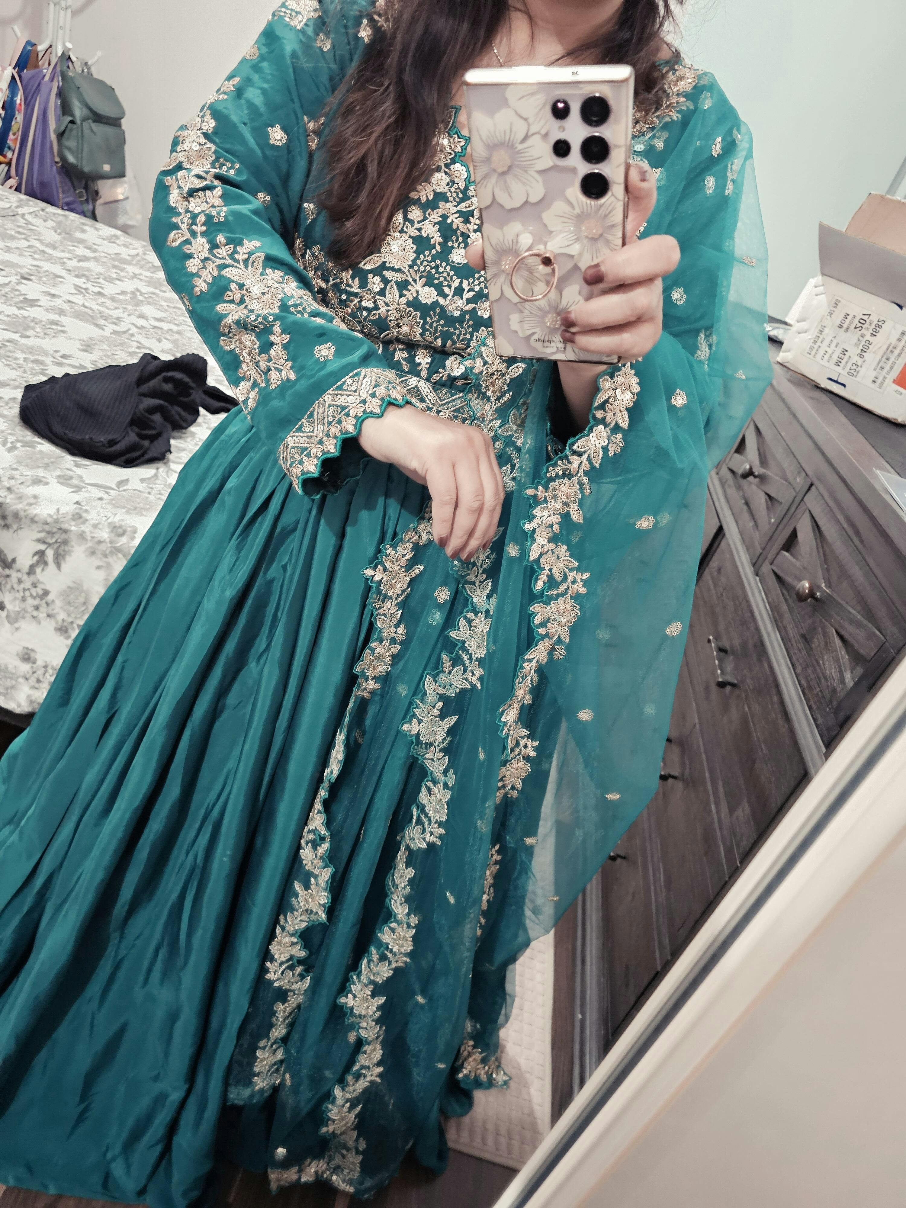 Bought this for one of events for my brother and soon to be sis in law. This was beautiful and I loved the shade of green, my sis n law said the quality was good! I ordered the xs for reference I’m 5’1-114lbs, it was big and will need to be altered but not a big deal. Was happy with both of the lehengas I purchased.