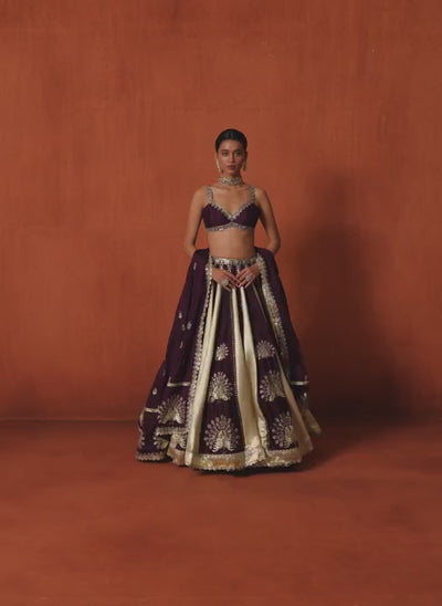 Wine Multicolor Embroidered Lampi Lehenga